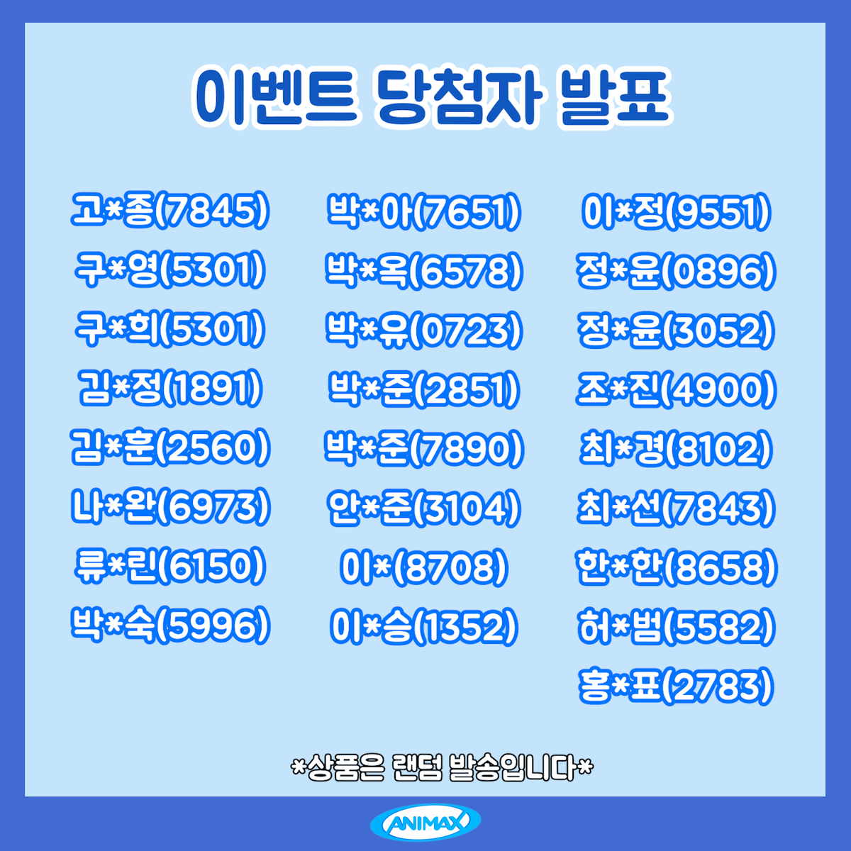 애니맥스 <겨울방학 이벤트> 당첨자 발표!!